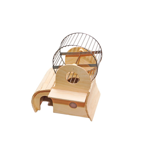 c Домик для грызунов 2х-этажный 22*18*27см фанера с колесом d14см сверху