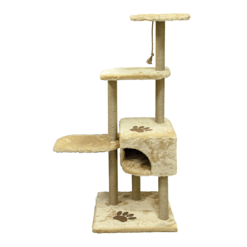 •  Когтеточка Дом с полками на подставке бежевая  640*410*1170мм Зооник