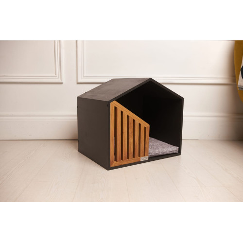 Дом деревянный черный с матрасом со съемным чехлом 42*42*35см