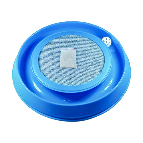 Представляет из себя когтеточку из ковролина с круглым треком и шариком. Когда кошка толкнет шарик лапой, он сможет сделать несколько кругов по треку, что обязательно на долго привлечет внимание животного. Подобные игрушки-когтеточки популярны в США. Кошка сможет поточить когти и поиграть в шарик. В комплекте идет пакетик с валерианой, для привлечения дополнительного внимания к игрушке у кошачьих. Конструкция усовершенствована за счет укрепления крышки, которая держит ковролин, тремя саморезами. Диаметр шарика 40 мм, что оптимально способствует тому, чтобы кошке было трудно вытащить его из трека и одновременно сохранить свободное движения шарика по треку. Вес игрушки 500 гр. Внешний диаметр круглой когтеточки-трека 39 см. Вышина 5 см. Товар упакован в полипропиленовый пакет и штрихкодирован.