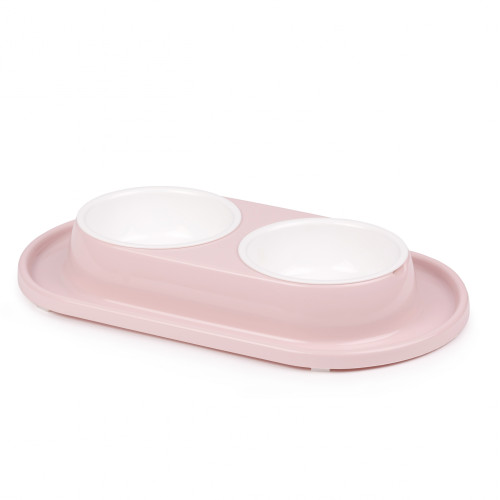 Миска пластиковая Лекси двойная на подставке 300мл розовая 35,5*21,5*5 см Альтернатива