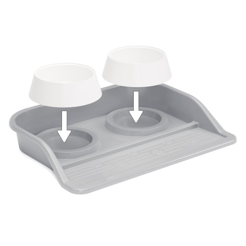Миска пластиковая набор 2 миски 300мл + подставка 410*300*60мм серый Альтернатива