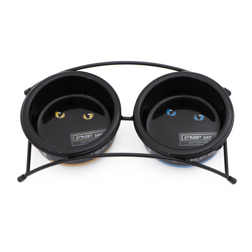 Для удобства в использовании двойная миска на подставке, предназначенная для кормления животных, сод..