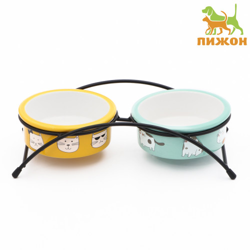 Подставка +2 миски керамические 2*250мл Пижон