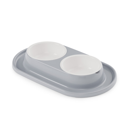 Миска пластиковая двойная на подставке 300мл серый 35,5*21,5*5 см Альтернатива