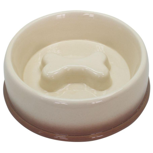 Миска керамическая для медленного поедания Косточка 680мл 21,5*6см бежевая Уют