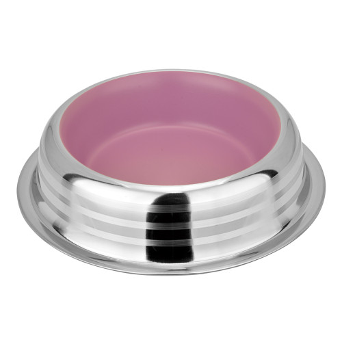 Миска металлическая ребристая с резинкой 230мл розовая Зооник