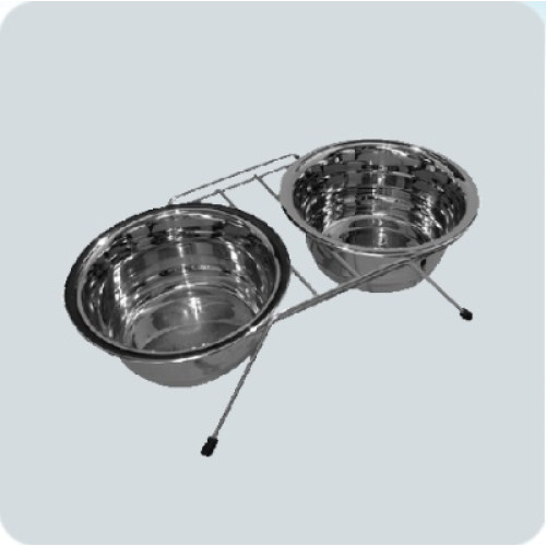 Подставка + 2 миски металлические низкая 0,5л никель Зооник