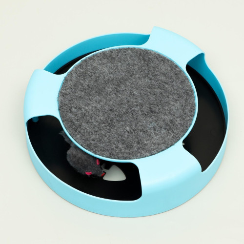 Игрушка для кошек интеррактивная круг с подвижной мышкой голубой Пижон
