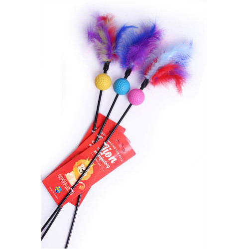 Игрушка для кошек дразнилка Шарик с перьями 63см в ассортименте LION