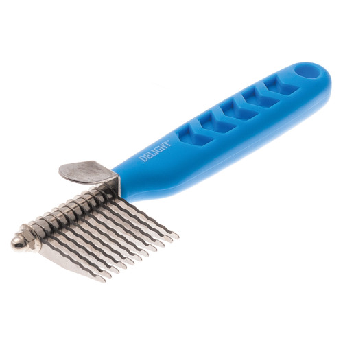 Для средн. и круп. собак. Лезвия специально заточенные, зазубренные края обеспечивают легкое удаление колтунов и минимизируют срезание шерсти. Прочесывайте шерсть осторожно, избегая контакта лезвий с кожей животного. Лезвия предназначены только для резки волос, не использовать для резки другого материала. Очень острые лезвия, использовать осторожно. Материал: нержавеющая сталь, пластик, резина.