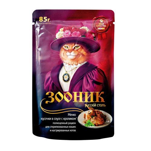 Зооник пауч 85гр корм для кошек стерилизованных кролик в соусе*24