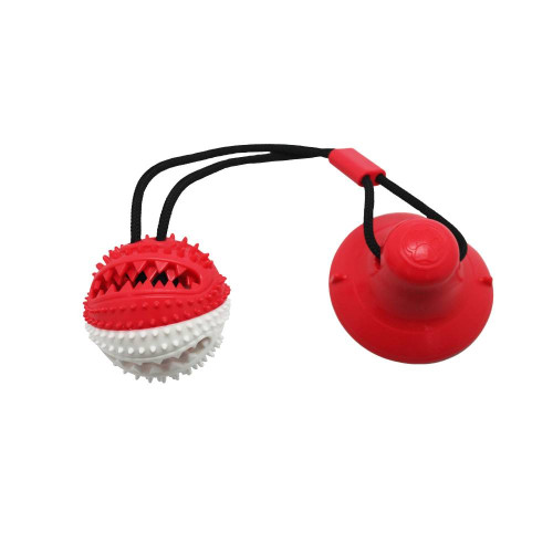 Игрушка для собак интерактивная Тяни-Кусай на одной присоске 40см красно-белый шипованый мяч Уют