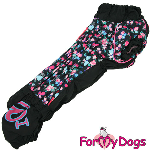 Комбинезон утепленный для собак рТС1 спинка 44см Бабочки чёрно/розовый для девочек Formydogs