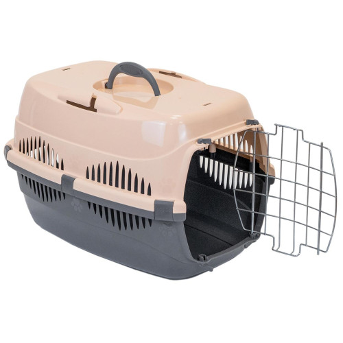 Переноска пластиковая с металлической дверцей до 3кг серая/песочная 49*33*32см Уют