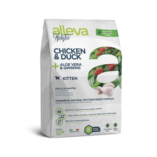 Аллева/Alleva Холистик Беззерновой корм для котят Курица/Утка/алое вера/женьшень 1,5кг