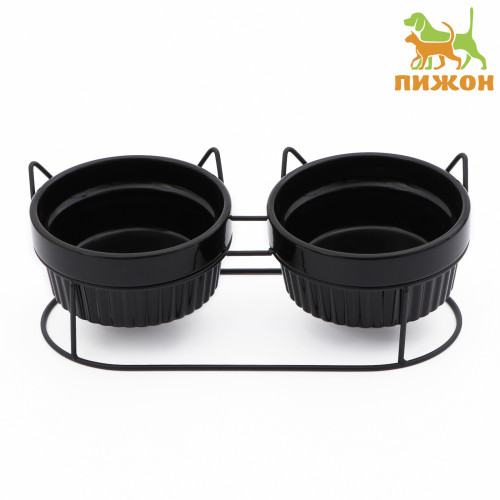 Подставка +2 миски керамические 2*250мл Пижон