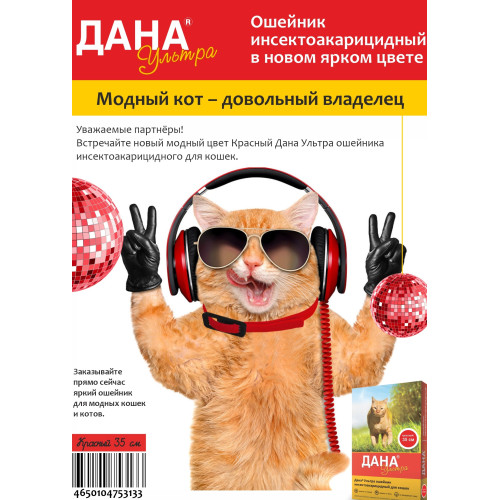 - Дана Ультра Ошейник для кошек 35см, коричневый (от блох, клещей, вшей, власоедов) 477 р.