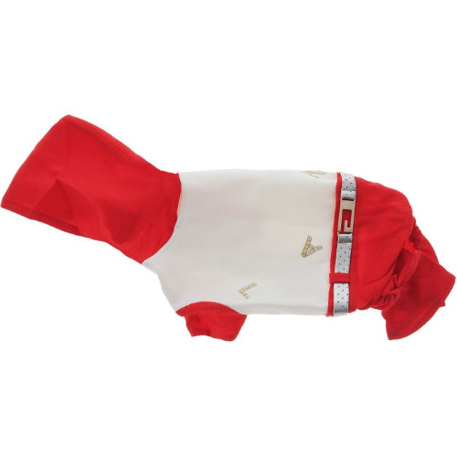 Комбинезон с остроконечным капюшоном р.S, спинка 24см белый с красным LION