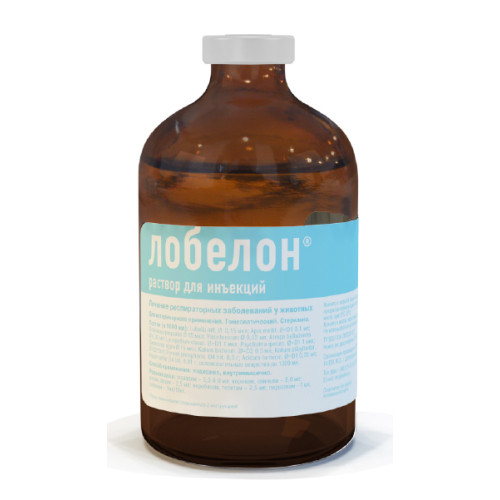 Лобелон обладает противовоспалительным, противокашлевым, антибронхоконстрикторным действием, регулирует продукцию бронхиальной слизи, улучшает легочную вентиляцию. ПОКАЗАНИЯ К ПРИМЕНЕНИЮ: 1. Острые и хронические заболевания дыхательной системы, сопровождающиеся кашлем и образованием трудноотделяемой мокроты: Ларинготрахеит Трахеобронхит Бронхит Бронхопневмония Ринит 2. Аллергические заболевания, сопровождающиеся кашлем: Аллергический ларингит Аллергический бронхит Бронхиальная астма 3. Гипоксия новорожденных СПОСОБ ПРИМЕНЕНИЯ И ДОЗИРОВКА: Внутримышечно или подкожно. Разовая доза препарата на одно животное составляет: 0,1 мл/1 кг массы животного. В острых случаях 1-2 раза в сутки в течение 5-10 дней; при хронических заболеваниях 2-3 раза в неделю. Длительность курса лечения устанавливается врачом, но не более 1 месяца. При необходимости курс повторяется.
