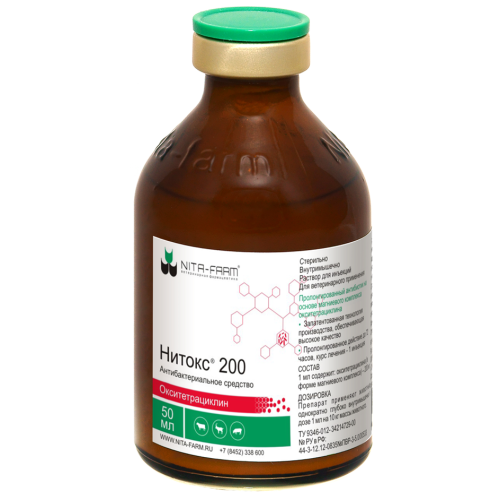Нитокс 200 вводится однократно внутримышечно в дозе 1 мл на 10 кг массы животного. Максимальный объем препарата для введения в одно место не должен превышать для крупного рогатого скота — 20 мл, свиней — 10 мл, овец, коз — 5 мл. При необходимости препарат вводится повторно через 72 часа.