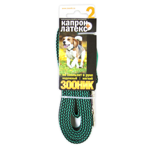 Поводок капроновый с двойной латексной нитью 2м*20мм зеленый Зооник