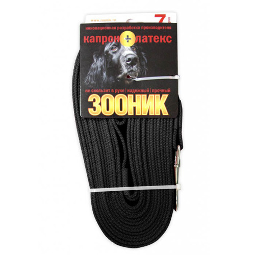 Поводок капроновый с латексной нитью 7м*20мм черный Зооник