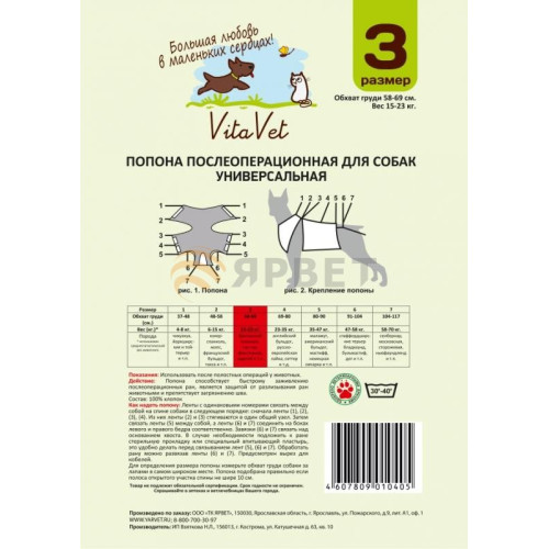 - Попона послеоперационная для собак №3 (обхват груди 58см) 2шт. Vita Vet 407 р.