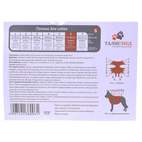- Попона послеоперационная для собак №6 (обхват груди 91-104см 47-58кг) Пчелодар 743 р.