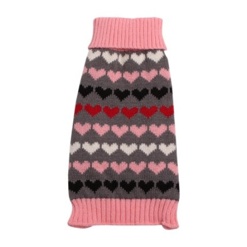 Свитер рL спинка 35см LMK-H94 розово-серый с сердечками LION