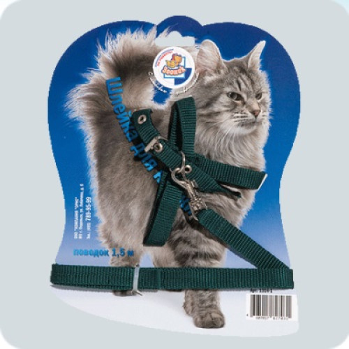 Комплект для кошек шлейка + поводок 1,5м на блистере Зооник