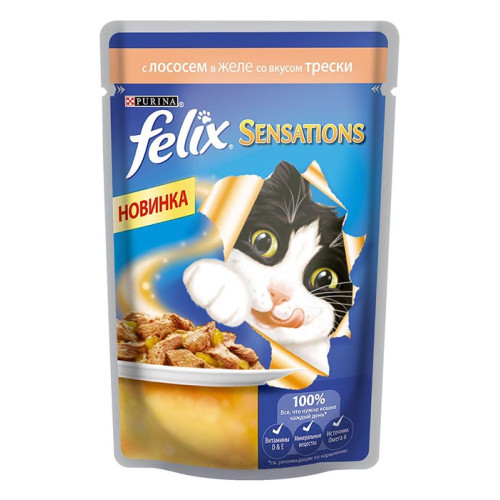 Феликс/Felix 85г sensations корм для кошек лосось/треска в желе