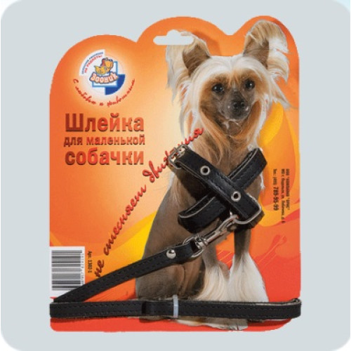 Комплект для собак мелких пород Шлейка + поводок 1,5м*12мм кожа на блистере Зооник
