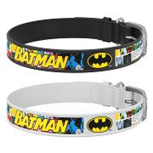 Ошейник для собак кожаный 2*29-38см Бэтмен QR-паспорт черный WauDog CoLLaR