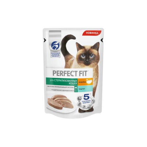 Перфект Фит/Perfect Fit 75 гр пауч корм для кошек стерилизованных паштет индейка