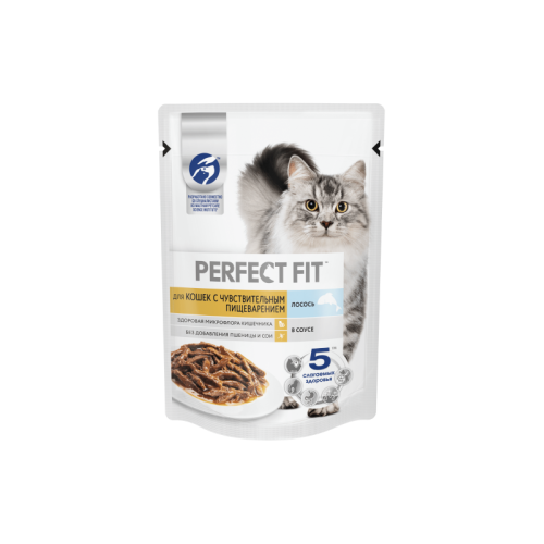 Перфект Фит/Perfect Fit 75гр пауч корм для кошек с чувств. пищеварением лосось