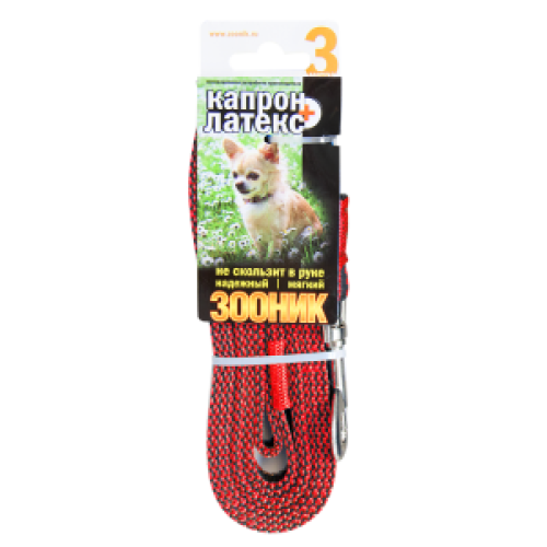Поводок капроновый с двойной латексной нитью 3м*15мм красный Зооник