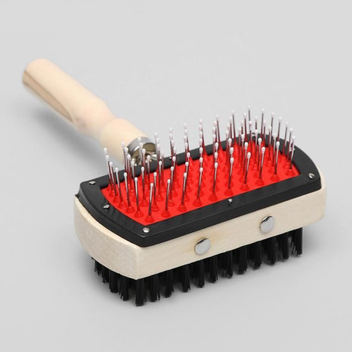 Расческа-щетка двусторонняя с деревянной ручкой 10*17см Пижон