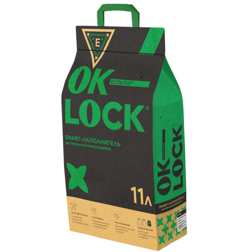 Наполнитель растительный комкующийся Ok-Lock 11л/5кг*3 смывается в унитаз
