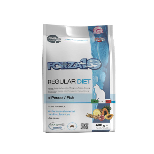Forza10 Regular Diet из рыбы – это корм для кошек при аллергии, разработанный компанией SANYpet для всех пород взрослых кошек с пищевой непереносимостью на мясо животных интенсивного животноводства.
