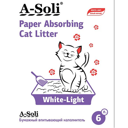 Наполнитель бумажный впитывающий А-Соли/A-Soli Вайт Лайт цветной 6мм 2,7кг/6л