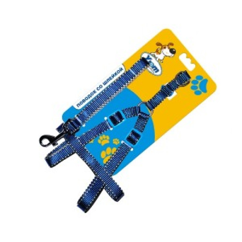 - Комплект для собак Шлейка 23-35см*1см + Поводок 120см Косточки синий Пижон 216 р.
