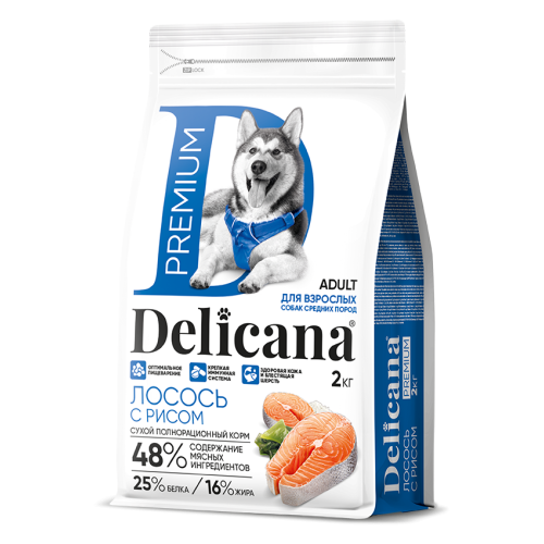 Деликана/Delicana корм для собак средних пород Лосось с рисом 2кг