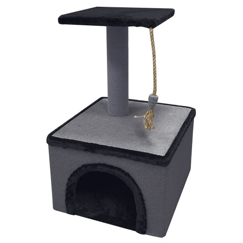 Когтеточка Дом средний с полкой 28*28см мех+ковролин 380*380*640мм Зооник