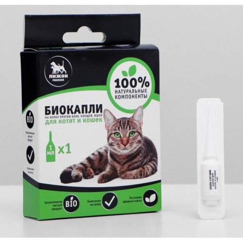 Пижон Премиум капли Био для кошек и котят от блох и клещей до 10кг 1мл*1