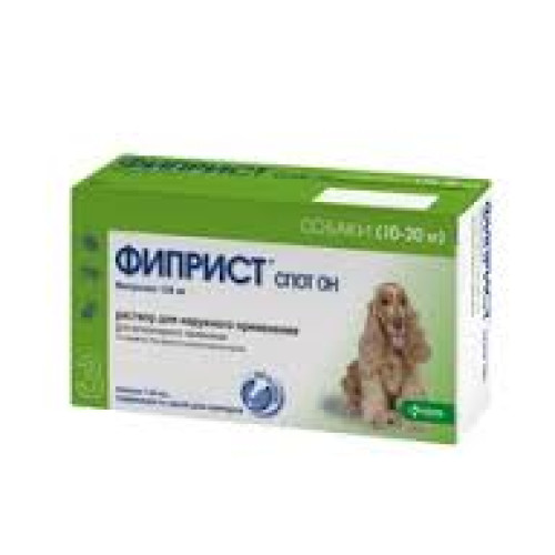 Фиприст спот-он капли на холку для собак 10-20кг, 1.34мл — предназначены для профилактики и лечения собак при поражениях эктопаразитами (блохами, клещами, власоедами), при блошином аллергическом дерматите . Отличается эффективностью, длительным сроком действия и безопасностью для здоровья животного.